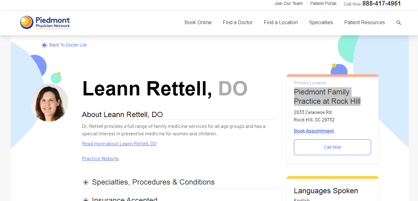 Leann Rettell, DO is a family medicine doctor who provides a full range of services for all age groups. She has a special interest in preventive medicine for women and children. Dr. Rettell’s practice website offers information about her specialties, procedures, and conditions. She accepts a variety of insurance plans and is affiliated with multiple hospitals. Dr. Rettell has received extensive education and training in her field and has received glowing reviews from her patients. She is known for providing friendly and compassionate care to all of her patients.