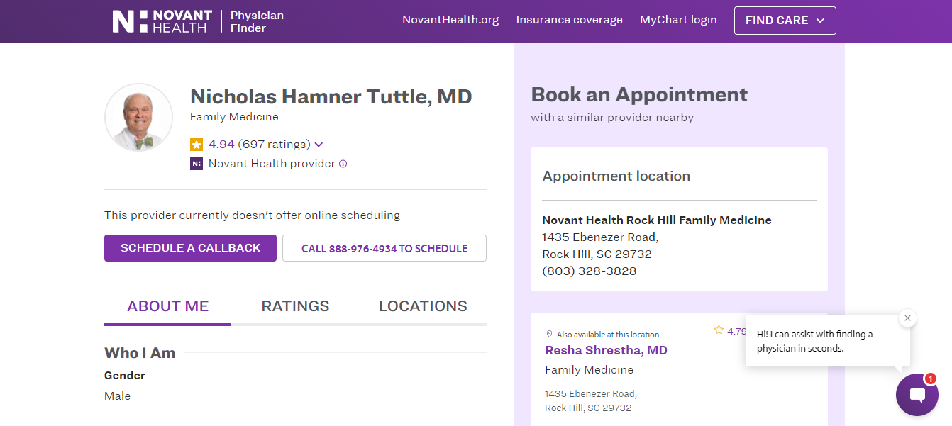Dr. Nicholas Hamner Tuttle is an experienced family medicine doctor who has been practicing for over 10 years. He graduated from the Medical University of South Carolina in 1982 and completed his internship in family medicine at Spartanburg Regional Medical Center in 1983. He then completed his residency in family medicine at Spartanburg Regional Medical Center in 1985 and continued his education with a fellowship in faculty development at UNC-Chapel Hill in 1990. Dr. Tuttle is a Novant Health provider and currently doesn’t offer online scheduling. Dr. Nicholas Hamner Tuttle is an experienced family medicine doctor who has been practicing for over 10 years. He graduated from the Medical University of South Carolina in 1982 and completed his internship in family medicine at Spartanburg Regional Medical Center in 1983. He then completed his residency in family medicine at Spartanburg Regional Medical Center in 1985 and continued his education with a fellowship in faculty development at UNC-Chapel Hill in 1990. Dr. Tuttle is a Novant Health provider and currently doesn’t offer online scheduling. To schedule an appointment, please call 888-976-4934.Â