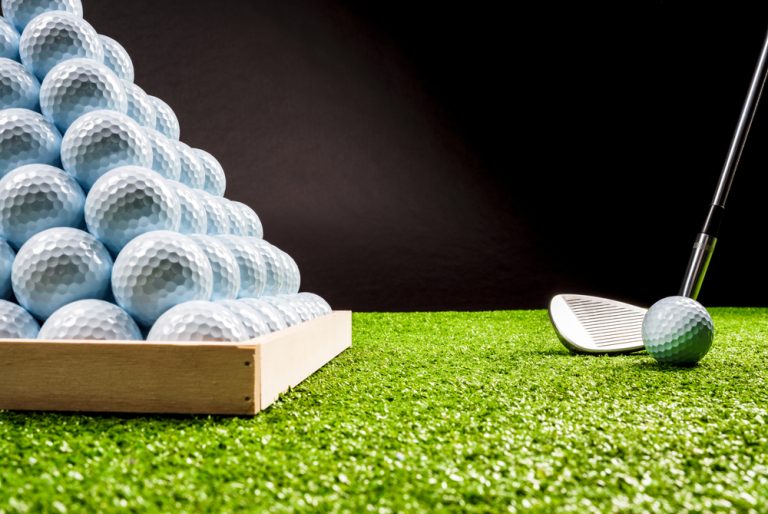 stack of golf balls at driving range