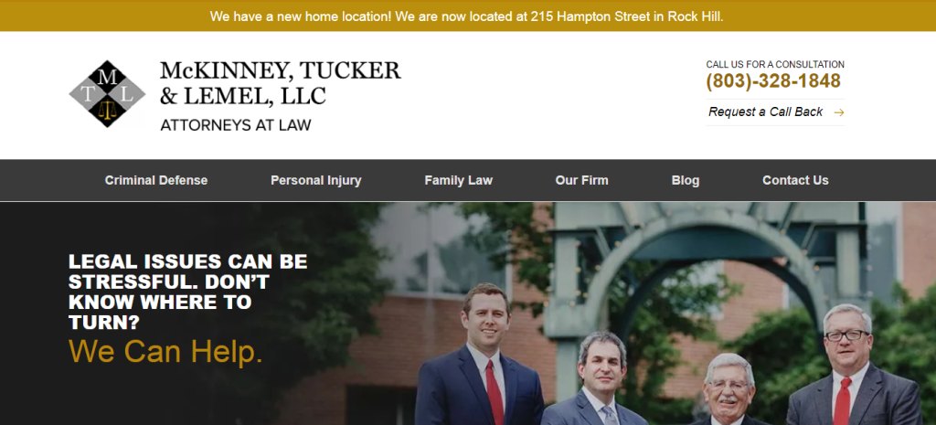 McKinney, Tucker & Lemel LLC is a personal injury law firm based in Rock Hill, South Carolina. The firm is proud to have decades of combined experience in helping their clients in York County, Lancaster County and South Carolina. Their team of experienced attorneys understands the stress and fear that clients may feel when seeking out legal help and strive to make sure that communication is maintained throughout the relationship. Their guiding principle is to work vigorously on their clients’ behalf while making sure that they attend to both the legal and emotional needs of their clients. McKinney, Tucker & Lemel LLC is committed to providing the highest quality of legal services and to achieving the best outcome for their clients.