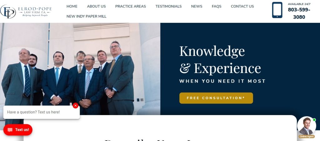 Elrod Pope Law Firm is an established law firm located in Rock Hill, South Carolina. Founded in 1980 by Luther C. “Luke” Elrod, the firm has experienced steady growth and expansion over the years, now boasting a team of experienced partners, many of whom are former prosecutors. The Elrod Pope team specializes in a range of personal injury cases, including auto accidents, truck accidents, work injuries, medical malpractice, personal injury, and dangerous drugs or products. They are dedicated to providing their clients with the best representation possible, and work hard to ensure that they receive the compensation they deserve. With their expertise and experience, Elrod Pope Law Firm is a trusted source for those seeking legal help in South Carolina.