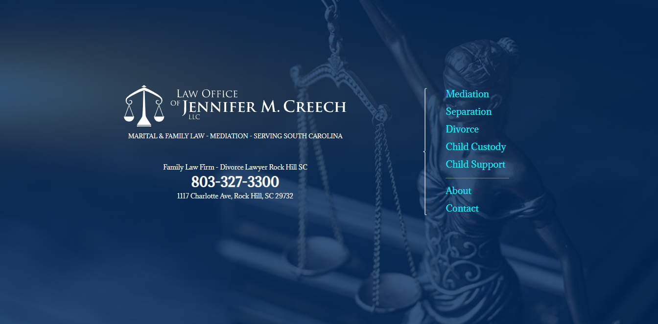 The Law Office of Jennifer M. Creech, LLC is an experienced family law firm located in Charlotte Ave, Rock Hill, SC. Led by attorney Jennifer M. Creech, a team of experienced lawyers offers comprehensive legal advice and representation to individuals and families dealing with a wide range of legal issues. The experienced attorneys are dedicated to providing the highest level of service to each of their clients. They understand that family law matters can be complex and emotionally charged, and strive to provide their clients with compassionate and knowledgeable counsel to ensure that their rights and interests are protected. From divorce and child custody matters to adoption and guardianship matters, the Law Office of Jennifer M. Creech, LLC is dedicated to helping their clients find the best resolution to their legal issues.