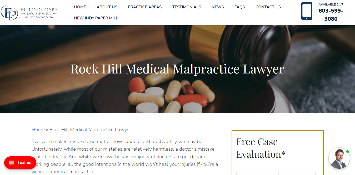 Established in Rock Hill, South Carolina, Elrod Pope has been at the forefront of medical malpractice legal services for over two decades. A cornerstone of professionalism and dedication to their clients, the team of seasoned attorneys have successfully provided high-quality representation for countless families and individuals throughout the region. These experienced professionals strive to protect their clients’ rights while ensuring that they receive the compensation they are entitled to under the law. With a history of positive results, community involvement, and passionate work ethic, it is no wonder Elrod Pope Law Firm is the number one choice for those seeking trustworthy counsel in medical malpractice matters.